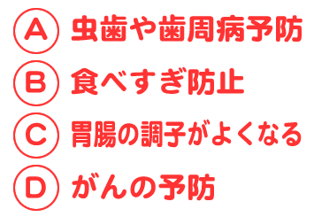 Q.「噛む」ことは色々な効果がありますが、次のなかで正しいものを選んでください。
