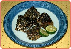 さんまは頭と尾、内臓を取り除き、さっと洗います。 水気をふき取って、幅4〜5cmに切り、しょうゆに約5分つけます。 ごまをまぶします。