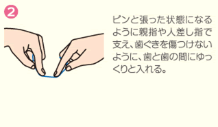 | ※デンタルフロスは歯間ブラシが入らない、歯と歯の間の隙間が狭い部分の使用に適しています。 | |
