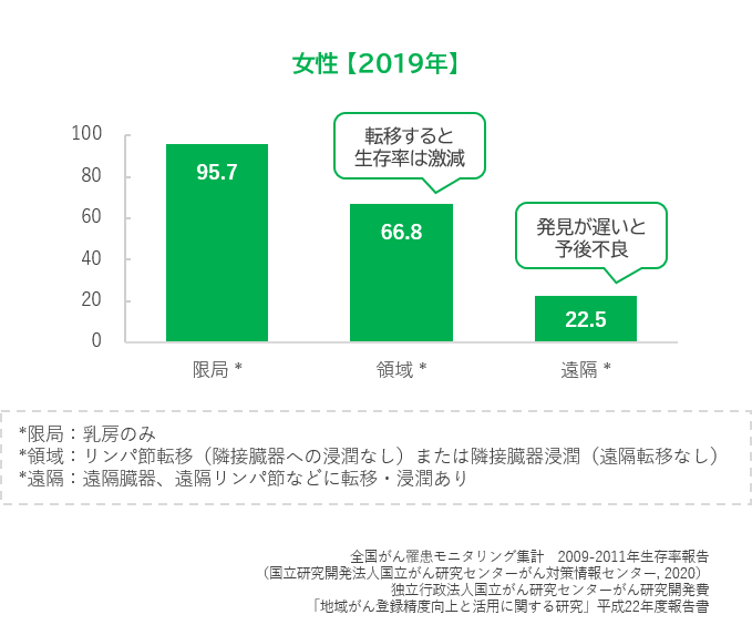 早期に発見すれば比較的治療しやすく予後の良いがんですが、進行すると治療が難しくなり、生存率は激減します。